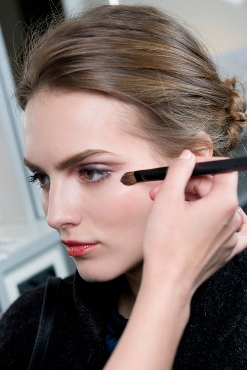 After applying primer, use a concealer brush to cover the darkest areas with lipstick. Disclaimer: You will look like a red panda, this is totally normal.