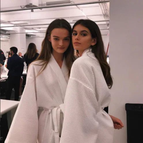 We’ve been anticipating this moment for some time now—Kaia Gerber has officially walked her first NYFW runway, for Calvin Klein. Earlier today, supermodel Cindy Crawford’s teenaged daughter posted photos to her Instagram hinting at what was to come, tagging Calvin Klein on images of her and fellow models preparing for a show.