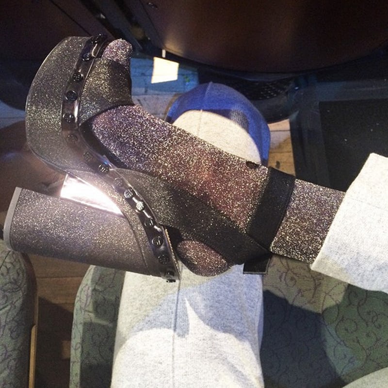 She's as quick to slip on platforms as she is to pull on a hoodie.