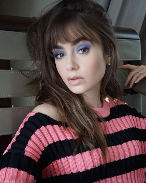 The Lily Collins-lead Emily In Paris has always been more than a visual feast — it’s a full-on aesthetic smorgasbord. There’s the inherent allure that comes with filming in Paris, in which even a morning coffee stop takes on a wistful, cinematic quality. There are the colorful clothes, selected by the legendary Patricia Field to look as much like confections as couture. And then there are the beauty looks, full of timeless red lips and chignons. Art may imitate life but on her recent press tour, Collins’ Parisienne looks are straight of the Emily playbook — and Lily Collins’ bun, accented by her long, just-cut bangs, might be the best one yet.