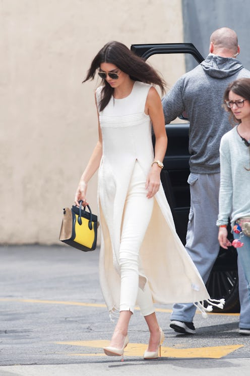 Remember your art teacher in middle school, the one who wore long tunics over pants (and likely accessorized with far too much turquoise jewelry)? Well the fashion world has finally taken back that look and Kendall Jenner is leading the charge. When she stepped out in this achingly chic monochrome outfit, built around a tunic by The Row, we became instant converts. Thanks to a sleek blowout, modern accessories and toned arms, the once middle-aged pairing feels young and fresh. Here we show you how to get the look on any budget.