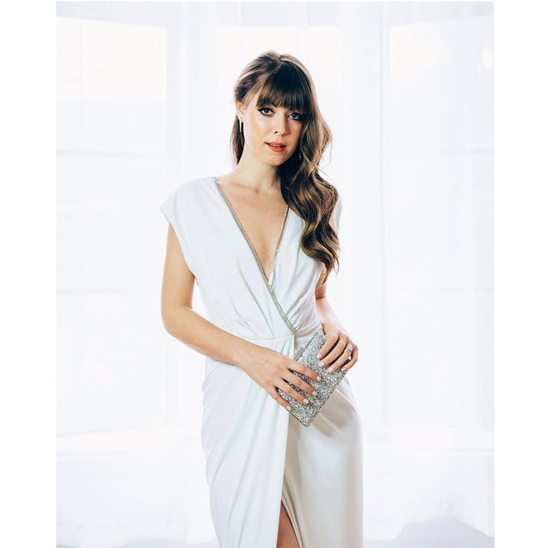 Still swooning over the glamorous gowns and star-studded Oscars parties? One of our favorite influencers, Jenny Cipoletti of Margo And Me, was invited to attend the ABC Mercedes-Benz Oscars party, so we asked her to show us her behind-the-scenes preparations. Looking beyond stunning with her side-swept curls and signature cat eye, she was a vision in white in the Swann V-Neck Gown from Rachel Zoe’s See Now, Buy Now evening capsule collection (straight of the runway of her LA Fashion Show earlier this month). See her look here.
