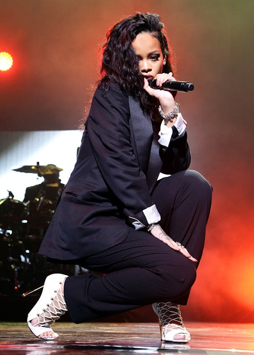 Despite being more than content with Elmo’s music video for Rihanna and Drake’s recently released number one single “Work”, we’re equally mesmerized by the official visuals. Shot in Toronto, it is actually comprised of two videos separated by a buffering bar, with the first taking place in a nightclub (with Rihanna wearing a Tommy Hilfiger crochet maxidress) and the second in a neon room—not unlike Drake’s “Hotline Bling” set up. While you could argue it is a little excessive to offer up multiple options for the same song, it seems to be a fitting fanfare since this single is Rihanna’s 14th number one on the Billboard Charts, a feat that has catapulted her past Michael Jackson’s position as artist with the third most number ones of all time.
