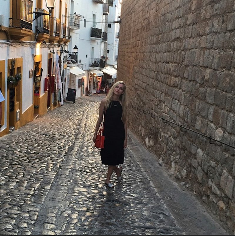 The classic Ibiza dresscode consists of a bohemian white lace dress, straw basket bag and espadrille sandals.