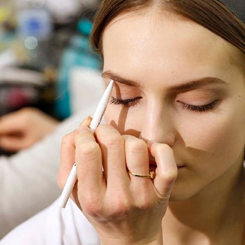 "I don’t believe in one basic shape for everyone but as a general rule of thumb I always say: Work with what you were naturally given. The big, thick brow is very "in," but if your hair simply doesn't grow like that, you won't be able to effectively achieve that look. To find where your brow should start, place a pencil vertically next to your nose and follow it up to your brow line. To know where the arch should reach its highest point, position the pencil diagonally from the edge of your nose through the pupil of the eye: wherever it meets the brow should be the peak.