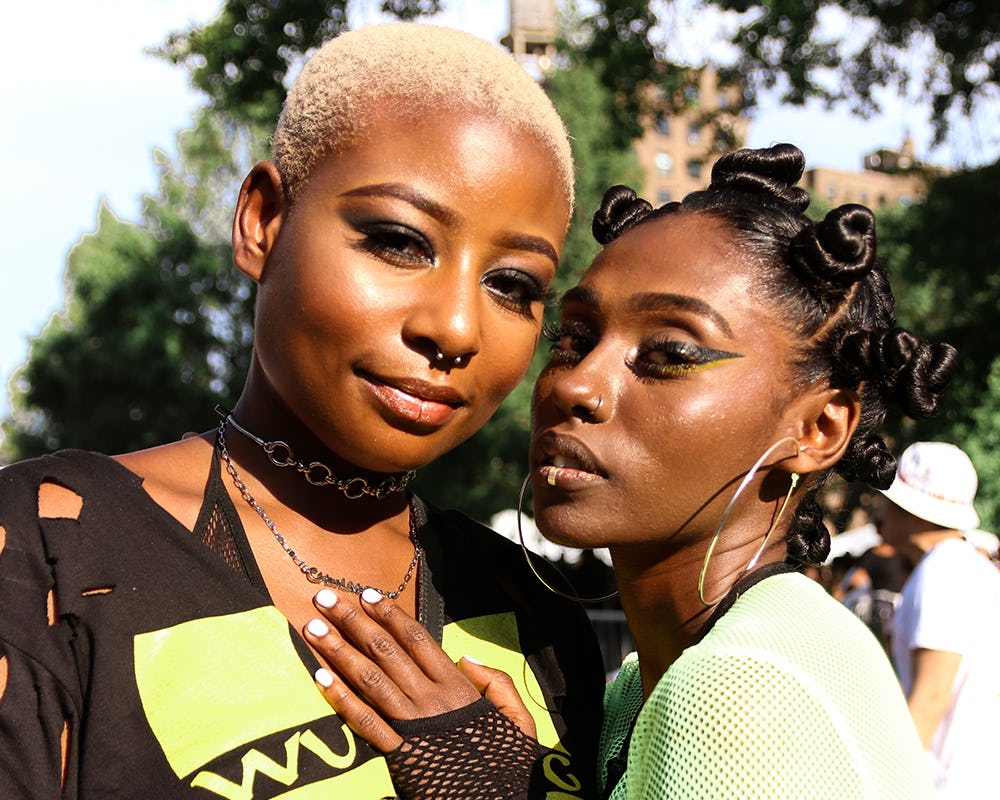 “This year, I wanted to go more punk. It’s my fifth time here. I have a big Afro, and wanted to do something different [with my bantu knots.]” — Jennnile, @starfishjelly (right), with Chanelle Marshall, @chanlmarshl (left)