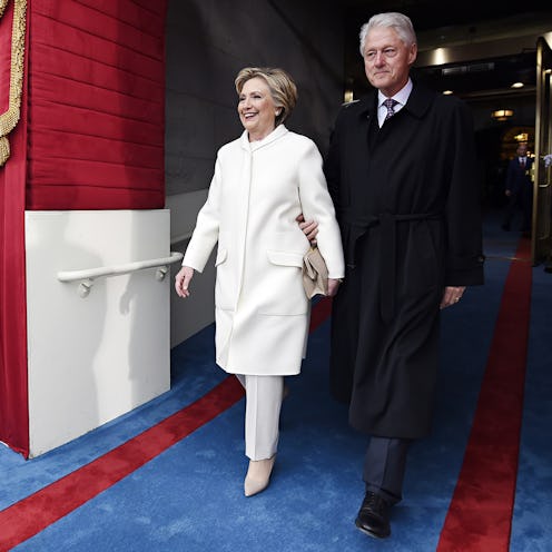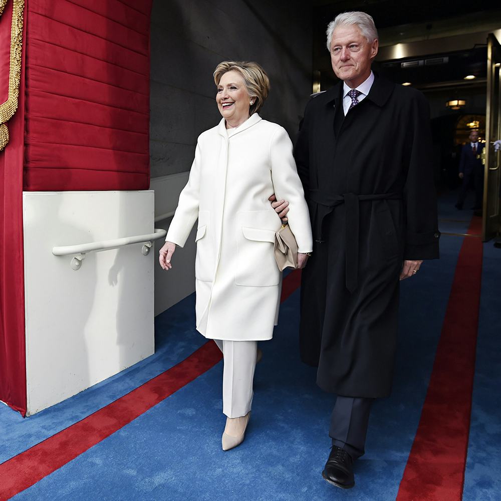 It’s a historic day for the American people. Donald Trump has been sworn in as the 45th president of the United States, and intense speculation preceded the event—about guest appearances, the speech he would deliver and, of course, the ensemble First Lady Melania Trump (as well as former FLOTUS Michelle Obama) would wear. But it was Hillary Clinton’s outfit that made the biggest style statement. Dressed in (you guessed it) a pantsuit, the former Democratic presidential nominee donned the symbolic silhouette in white, a subtle reference to the woman’s suffrage movement. It’s particularly notable on the eve of the Women’s March on Washington, a rally against a new administration that some believe threatens to marginalize women’s rights. Hillary’s cashmere coat and suit were designed by Ralph Lauren, who also dressed Melania in a powder blue skirt suit that resembled former First Lady Jacqueline Kennedy’s sophisticated look at President John F. Kennedy’s inauguration in 1961. As is typical of a moment this pivotal, fashion continues to play a major and symbolic role.