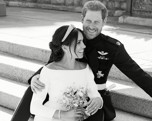 In keeping with their modern spin on royal nuptials, the Duke and Duchess of Sussex have already released three portraits from their big day. The first showcases the radiant pair, casually seated on steps outside. The second is an adorable, and fun, picture with their page boys and bridesmaids—including Prince George and Princess Charlotte. The final photo is with their immediate family, featuring Meghan and Harry in the center. Much like the couple, the pictures are simple, relaxed and absolutely beautiful.
