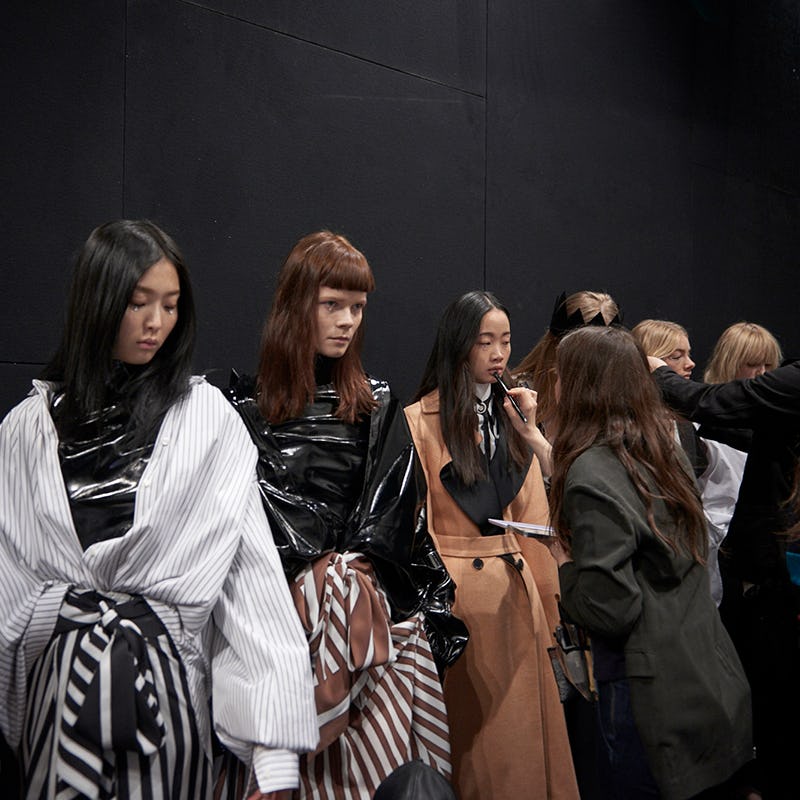 "Our 28 ladies who present 38 looks are in final formation and getting last-minute adjustments to styling, hair and makeup. Sung Hee Kim and Irina Kravcenko at Women Management are now regulars on the Tome runway, and we try and work with them every season. We love our ladies to return as we believe in them."