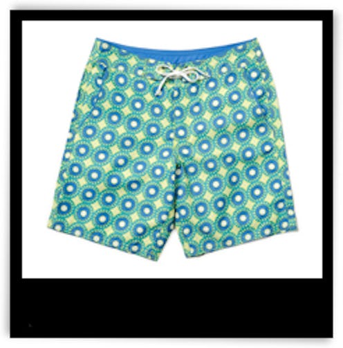 “For surfer dudes not afraid to make a statement, we humbly suggest these lime green shorts with a bold medallion pattern.”