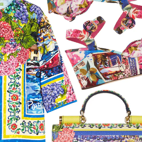 As of this week, you can add Portofino to your lengthy list of must-visit vacation spots. First, a batch of cool girls—including our EIC—hit the Italian locale for a chic weekend away, and now fashion powerhouse Dolce & Gabbana officially launched an exclusive Portofino-inspired collection with e-retailer Net-a-porter. The capsule—which includes over 20 perfectly printed separates, swimwear and add-ons—comes covered in painterly scenes of the coastal city. So what if we can’t afford 80% of the must-haves? We can dream—and devise dream outfits to wear with the pieces should we happen to win the lottery anytime soon.