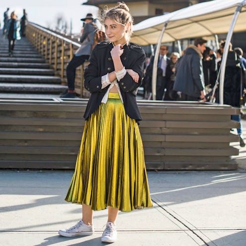 Pretty pleats are the epitome of femininity, but add metallic fabric to the mix and you’ve got something that really packs a punch. Gracing many a Spring runway (see Gucci and Marc Jacobs), metallic pleated skirts rendered in a range of shades proved more versatile than ever. And before you start thinking shiny skirts seem impractical (especially during the winter chill), we’ve sourced 8 interpretations that prove totally wearable for work, play and off-duty when styled accordingly. From modern midis to flashy full-lengths, here’s our guide to mastering metallic pleated skirts this winter.