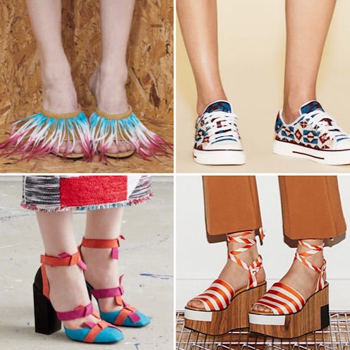 The Resort collections have been chock-full of enviable footwear. From fantastic fringe to super-cool sneaks to eccentrically colored heels sure to take any outfit to the next level, the upcoming trends are both bold and totally wearable. We’re too excited for all the fun options to wait until these styles become available, so we found you similar ones to can wear now.