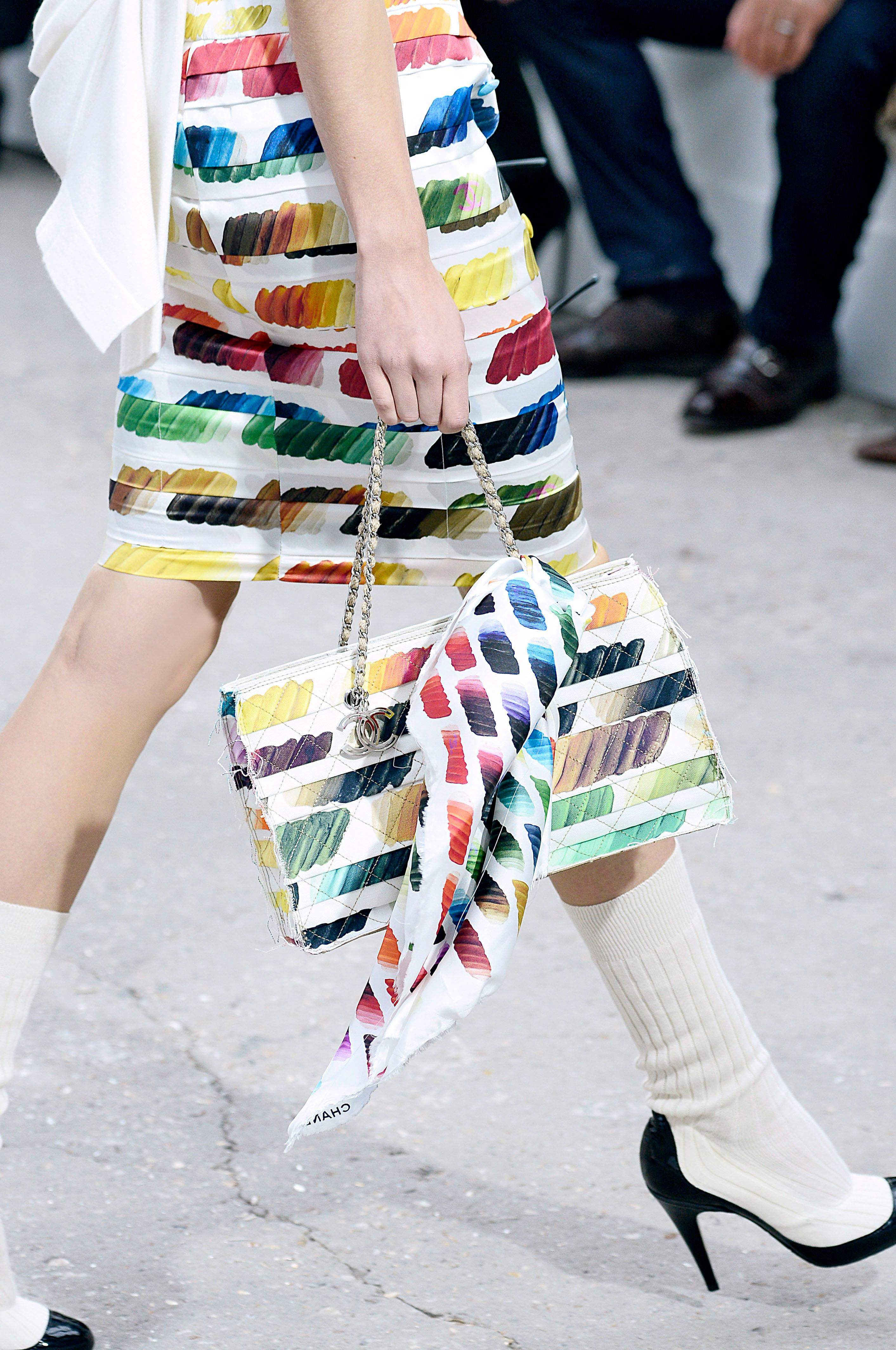 Channel the painterly prints and expressionist-style add ons rocked on Chanel’s spring 2014 runway with a bold and artful accessory