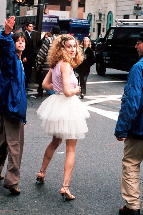 Slouchy boots and bright whites may be top of mind right now, but there is a sexier, unexpected style that’s also garnering attention—and we can’t help but feel a touch of TV nostalgia when wearing it. Strappy, sling-on sandals in finishes like satin, metallic and glossy leather are reminiscent of the footwear Sex and the City icon (and TZR idol) Carrie Bradshaw donned with her plethora of head-turning outfits. The skinny straps and stiletto heel make the shoe sultry, while vibrant colors and embellishments add a playful quality. Try throwing on a pair with a frock for evening à la Carrie or with fall separates during the day—they serve as a fresh alternative to closed-toe pumps when you’re in need of something less serious. Shop our top picks ahead to score them for yourself.