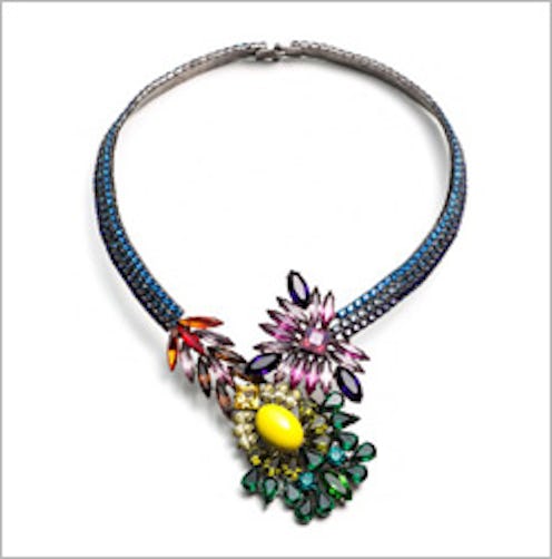 If you’re looking to invest in a notice-me necklace, you can count on this sister designer duo to always have you covered. Flawlessly fashioned in smoky gunmetal and dripping in rainbow-colored Swarovski sparklers, this opulent ornament is expected to draw in more style-scouts than your average bling-y bauble. Craving an insider’s look at Dannijo’s latest crystal-packed compilation? Don’t forget to tune into today’s hang out for exclusive interviews and a sneak preview of their spring 2014 collection—trust us, you won’t want to miss this.