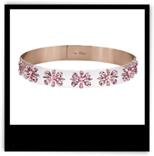 What outfit wouldn’t be made chicer with the addition of a little crystal? That’s what we’re asking ourselves today as we examine Dior’s bedazzled cincher. Clear in the front and metal in the back, the accented piece is ready to shape your seasonal style with a pinch of pink!