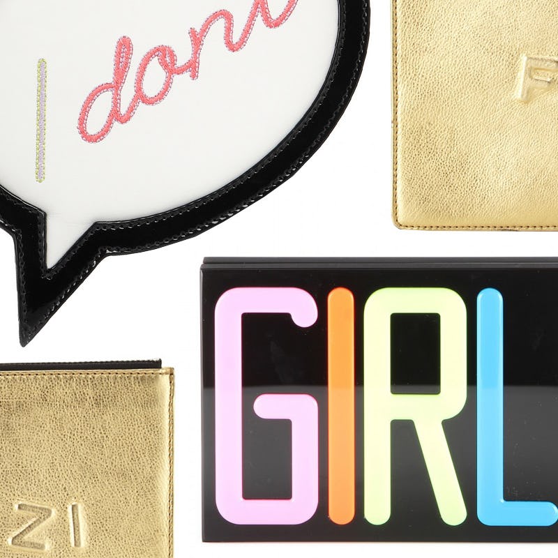 If you’re as accessory-obsessed as we are, you’ve already scoured the season’s best handbag trends for a classic investment piece that will carry you through fall and beyond. For the days that leave you feeling a bit more expressive than usual, dare to buy into another budding bag trend we back: quippy phrases on clutches in all shapes and sizes. Available in both subtle leathers and shocking metallics, let these quirky carryalls tell their story–their trend-setting capability truly speaks for itself!