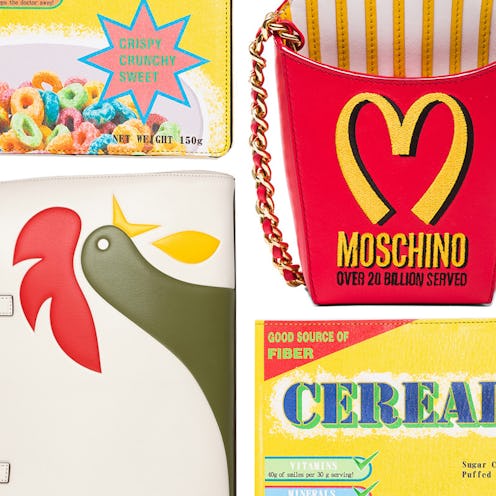 Thanks to the recent onslaught of look-at-me accessories (hello, teensy-weeny bags and glittery boots) there are few trends that stop us in our tracks anymore. We literally thought we had seen everything. That was until a crop of quirky accessories appeared on the scene cleverly referencing our favorite cheat meals. From a luxe cross-body shaped like a milk carton to a quirky clutch that celebrates our love for takeout, these pieces come packed with personality and, better yet, are calorie free. If you’re hungry for a new adorable trend, you’ll want to devour all 8 of these kitschy picks.