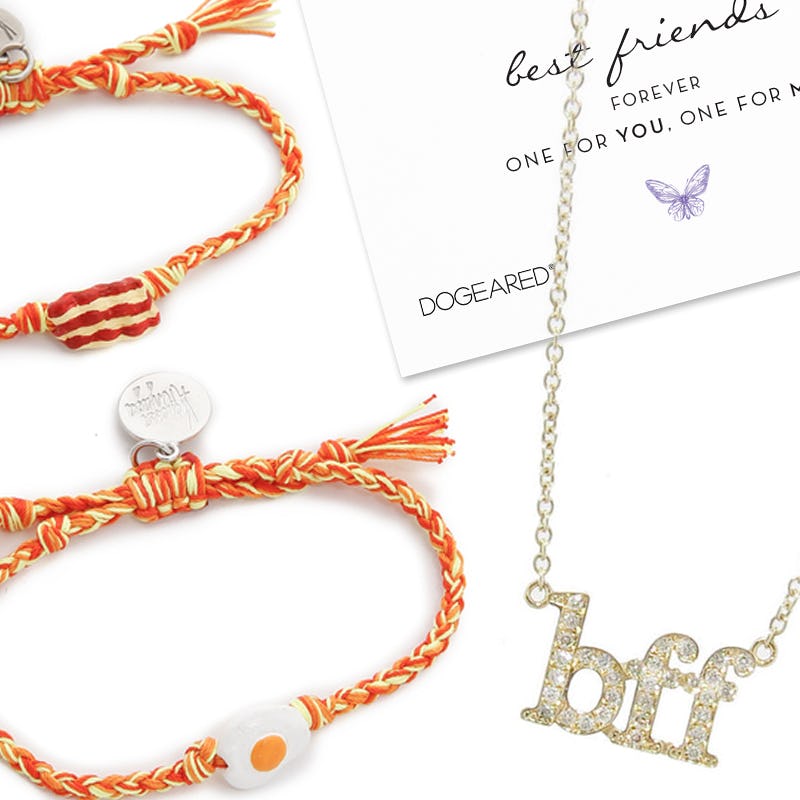 If you’re expecting to see broken-heart necklaces and braided bracelets, you’re in the wrong place. News flash: Friendship jewelry has upped its game as of late. From a luxe take on puzzle-piece pendants to a stack-worthy set of bracelets sure to make your BFF laugh (in a good way), these uber-chic styles were made to share with a very special (very fashionable) partner in crime. After all, there are few things more valuable than good girlfriends.