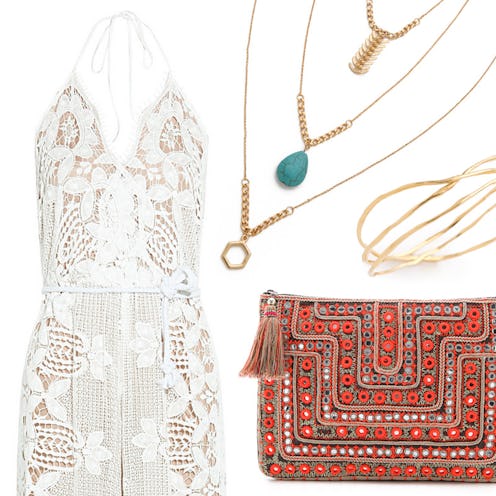 A crocheted jumpsuit like this one can be worn to the beach with a printed bikini and flat sandals or taken into the town with platform wedges and gold-toned jewelry.