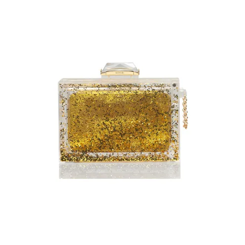 Rendered in crystal clear perspex and showcasing a majorly cool update to your classic minaudiere with one slight shakehello floating, gold glitterKoturs blinged-out buy is sure to leave your friends and fellow party goers in envy. A conversation starter with major outfit enhancing potential, were already planning our evening ensembles à la the holiday season around this cocktail-cool clutchI mean, can you blame us?