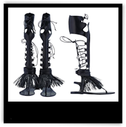 Availability: Marios Schwab x Ancient Greek Sandals High Gladiator Sandals ($590). For additional information, visit Ancient-greek-sandals.com.