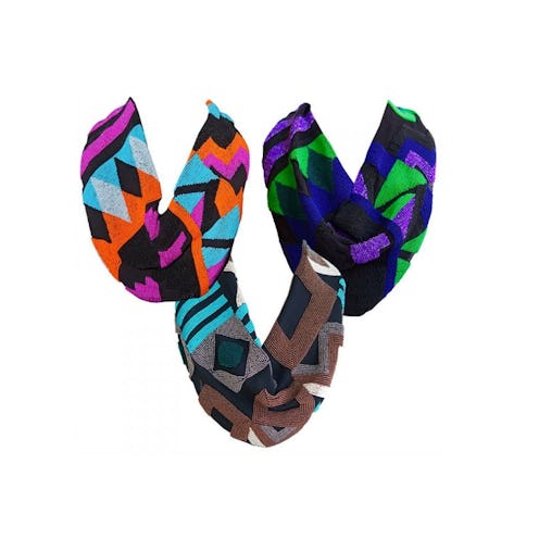Available in a handful of haute patterns, beading and embellishments, Roarke’s nifty neckpieces are a must-pack if you’re headed to the desert in the upcoming weeks for springtime show-going. Incorporating one into your festival-ready ensemble is easy—it’s most eye-catching teamed with a monochromatic blouse or jumpsuit, distressed denim and boho-chic sandals!
