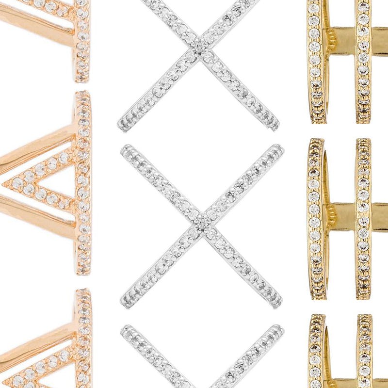 Dripping in tiny crystals and rendered in gorgeous gold, rose gold and silver tones, these petite rings are made to be mixed and matched. Stack them high (there is no limit) and don’t forget your prettiest summer mani to match!