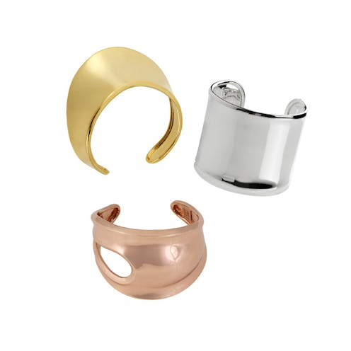 Availability: Robert Lee Morris Gold Mini Cuff, $195; Sterling Silver Cuff, $1050 (coming soon); Rose Gold Phantom Cuff, $375.