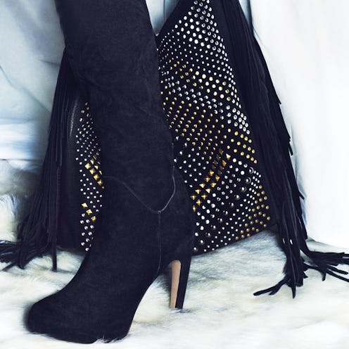 Channel this season's bohemian trend with this fringe bag. The stud detailing makes it the perfect day-to-night transition accessory. Wear it with leather leggings and ankle booties.