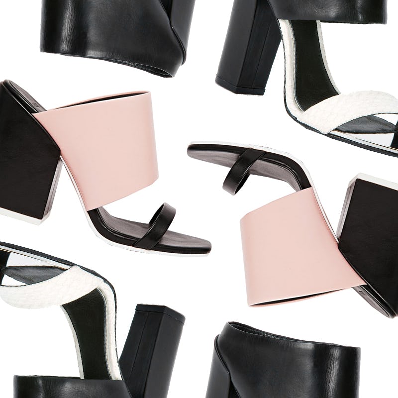 Always on the hunt for the latest and greatest in shoes, we’ve become eager to dip our toes into the latest update on Spring 2015’s It shoe, the mule. This season, the cool girl-approved silhouette takes on a new sandal-like shape complete with double-strap details and bold color-blocking. Although our feet might not be ready to step into these open-toe numbers due to chilly temperature, it’s never too soon to get a head start on your spring shopping. So when it comes time to finally pack away your winter coat, team the trend with distressed denim and a nubby knit during the day, then with a fitted midi dress and leather jacket at night.