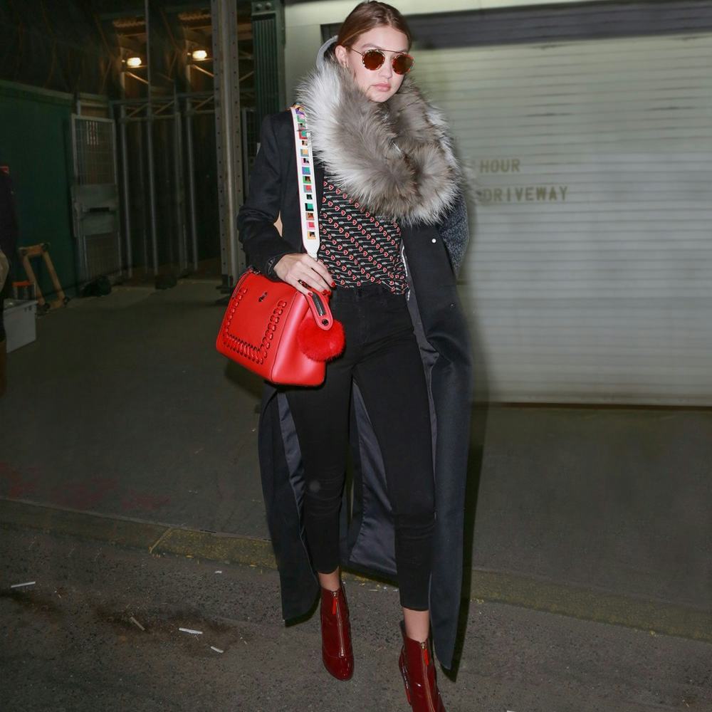 We love a bold accessory moment, and the latest look to coax us away from our black mainstays is a red bag-and-shoe combo sported by none other than Gigi Hadid. Combining a fire engine red handbag with deep burgundy booties, our favorite blonde bombshell shows us how mixing up two similar shades can add dimension to an otherwise simple ensemble—plus totally ups its cool factor. Here, nine takes on red-hot accoutrements, from trend-right shoes to fierce handbags.