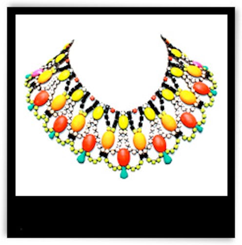 Every season we look for that one statement accessory that will instantly enhance our wardrobes with little to no effort. When we want a truly unique and eye-catching piece, we often consult the creative and remarkably innovative jewelry maven Tom Binns—his lust-worthy, avant-garde pieces immediately steal the spotlight in any closet. Today, we’re turning our attention to the designer’s Electro Clash Nova Necklace—an add-on guaranteed to bestow instant it-girl status on whoever dons it.