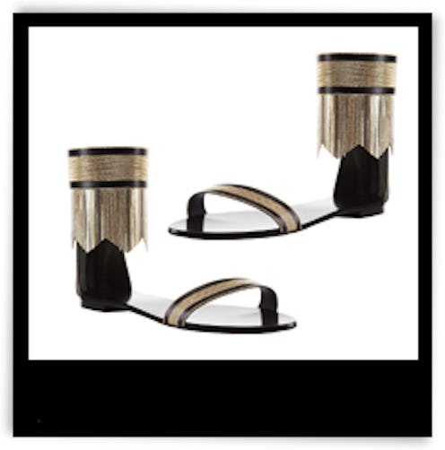 Versace’s spring runway boasted romantic ensembles and add-ons that merged Donatella’s classic glam aesthetic with the sensual, west-coast vibe of the festival garb we’ve been featuring all month. No other accessory in the collection better epitomizes Versace’s lust-worthy blend than the label’s Gladiator Flat Sandals —a covetable and irreplaceable addition to any seasonal shoe selection.