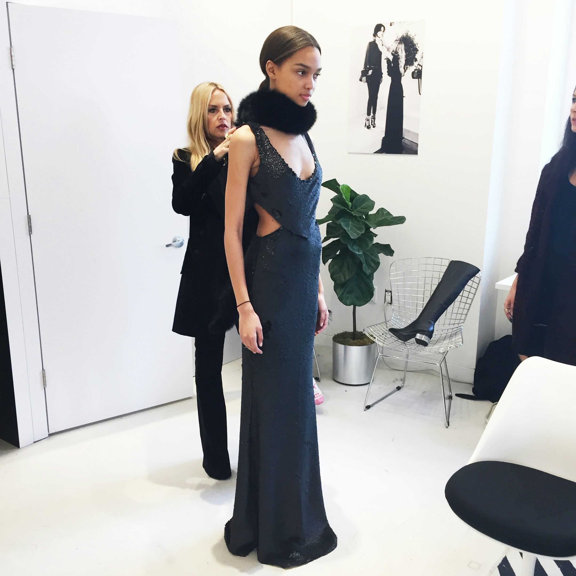 Rachel Zoe’s Fall ’15 collection will be presented at NYFW today, and we are on the edge of our seats in anticipation! While we can’t see the actual looks until the event starts, we got behind-the-scenes access to witness the intricate process of Rachel and her team getting every last detail ready—from editing the high-shine metallic accessories to makeup testing with Charlotte Tilbury to RZ styling each model. Here is your backstage pass for a sneak peek at our EIC’s latest collection.