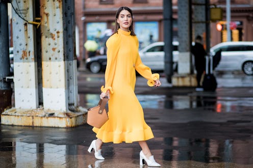 If you prefer a wrap dress with more structure, consider this button-up wrap dress. The off-centered buttons and asymmetrical hem look so editorial, and the cuffed sleeves are a subtle nod to menswear. This saffron hue is anything but boring, though the shade is surprisingly neutral — it pairs equally well with black, leopard, cobalt, or primary red accessories, depending on how bold you’re feeling today.