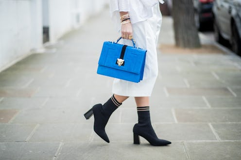 Though the shaft of a sock boot is standard (meaning, a stretchy knit), there are plenty of variations in the sole, heel, and material to suit every occasion. For cocktails, try a sock boot with a pointed toe and stiletto heel — a perfect complement to the delicacy of a slip dress — or try a pair with an architectural heel or in a luxe leather fabric; you can always dress them down the next day, contrasting the sleek silhouette with baggy denim. If your preference tends toward casual, take advantage of the workwear trend and choose a sock boot with a chunky lug sole; it’ll add a dash of streetwear edge to everything from sweats to skirts. And if you favor timeless pieces, there’s a sock boot for you, too — try a knit-shaft Chelsea boot for a subtle and timeless take on the trend.