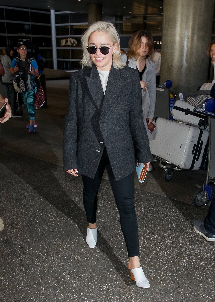 Whether traveling or running errands, white booties and a textured topper elevate an outfit grounded in basics. In a spectrum of black, white and gray, you can't go wrong.