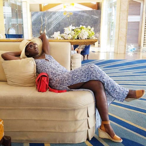 On vacation in Bali wearing a Forever 21 printed maxi.