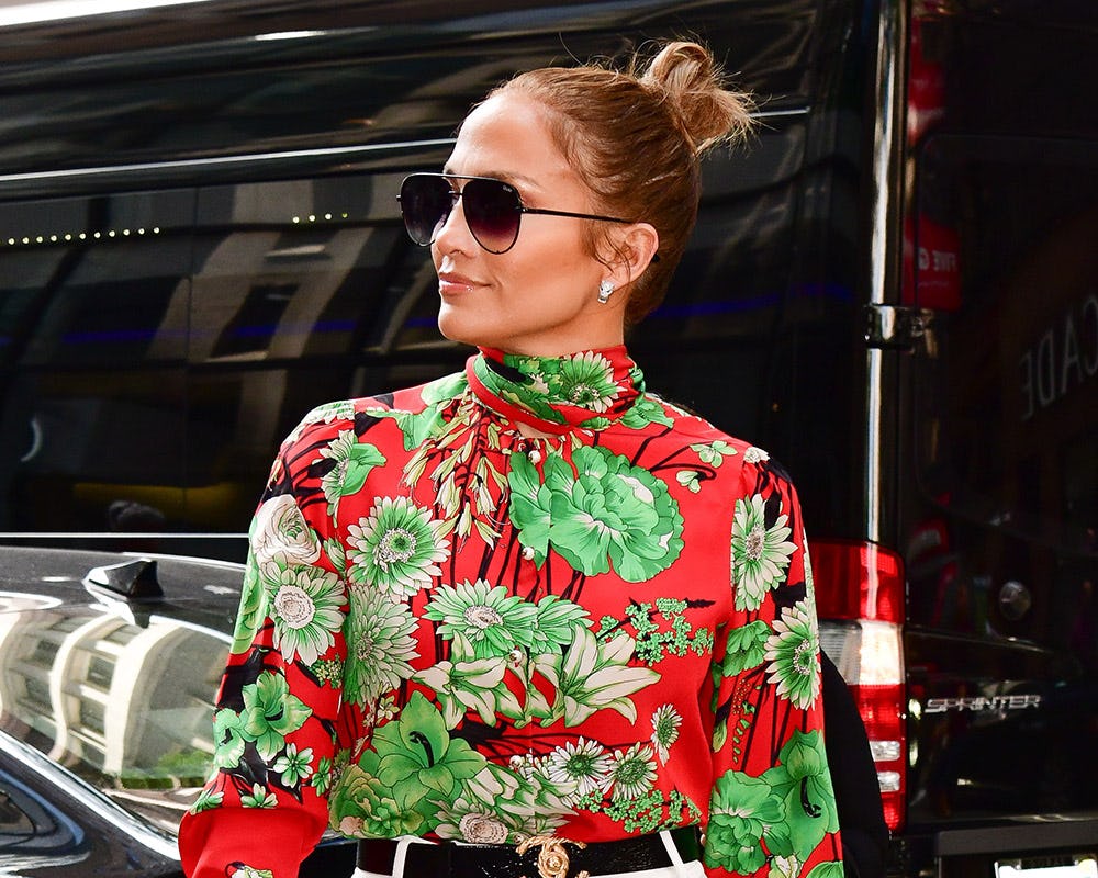 Whether for work or an elegant event, a neat wide-leg pant and feminine blouse is a fail-safe combo, especially if you want a break from dresses and skirts. Don’t skimp on accessories—we love how J.Lo chose a delicate pair of studs, sleek black belt and timeless aviator sunglasses (we found her exact pair, by the way!).