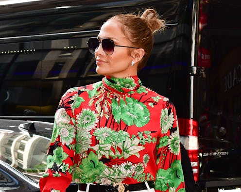 Just recently, Lopez took a pristine white wide-leg pant for a spin by pairing it with a punchy floral blouse and polished accessories. The feminine formula is perfect for when you’re in need of a work-appropriate outfit that can easily take you to evening cocktails. What’s more, Lopez punctuated the look with a croc-effect bag which is not only a favorite of hers but another leading handbag trend for fall. This is a must-try look for the new season.