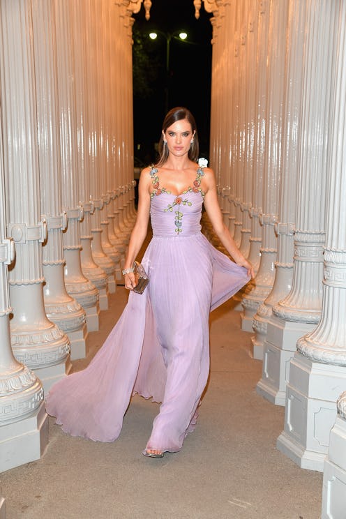 Model Alessandra Ambrosio's angelic Gucci gown was ideal for turning the museum's outdoor installation into her own personal catwalk.