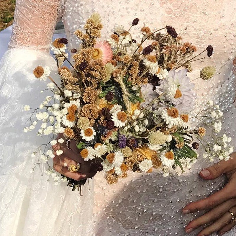 If there’s anything Pernille Teisbaek gets right every time, it’s style. The Danish cool girl knows just how to keep things effortlessly chic, and during her nuptials to longtime boyfriend Philip Lotko, the blogger did not disappoint. Pernille wore a sheer Vera Wang gown, complete with Chantilly lace sleeves, a pearl-encrusted belt and a cascading train that gave her an undeniably ethereal glow on her big day. The bride paired the gown’s unexpected silhouette with matching pearl drop earrings and Manolo Blahnik heels. It was sheer perfection—literally—and we’re definitely adding this to our wedding inspo boards.