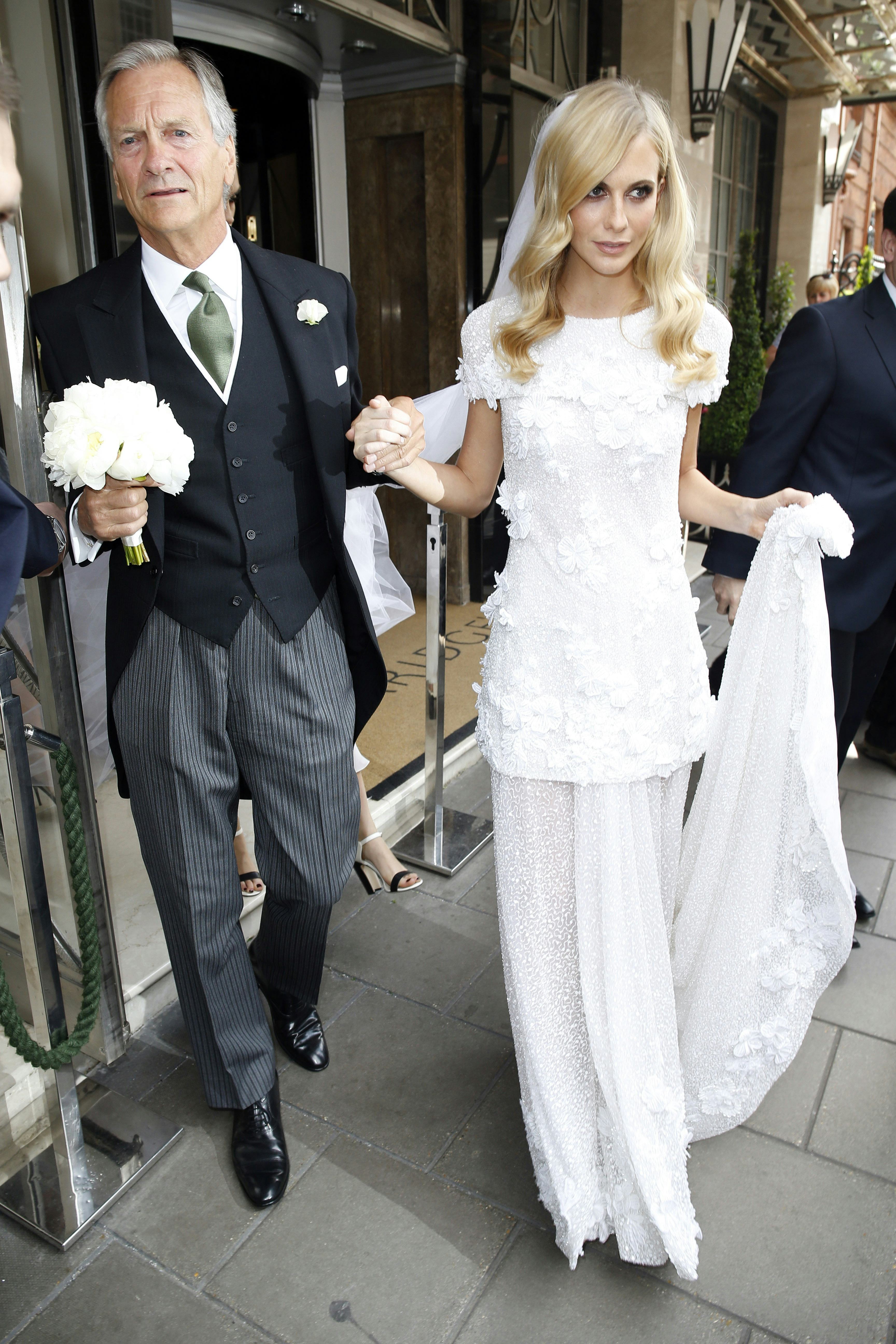 Ultimate It-girl Poppy Delevingne married James Cook in London today wearing a beyond stunning Chanel Couture gown, her luminous makeup done by one and only Charlotte Tilbury. In a word: flawless. While it’s hard to recreate such a unique, special dress like this one, we found a few likeminded pieces for our brides-to-be out there.