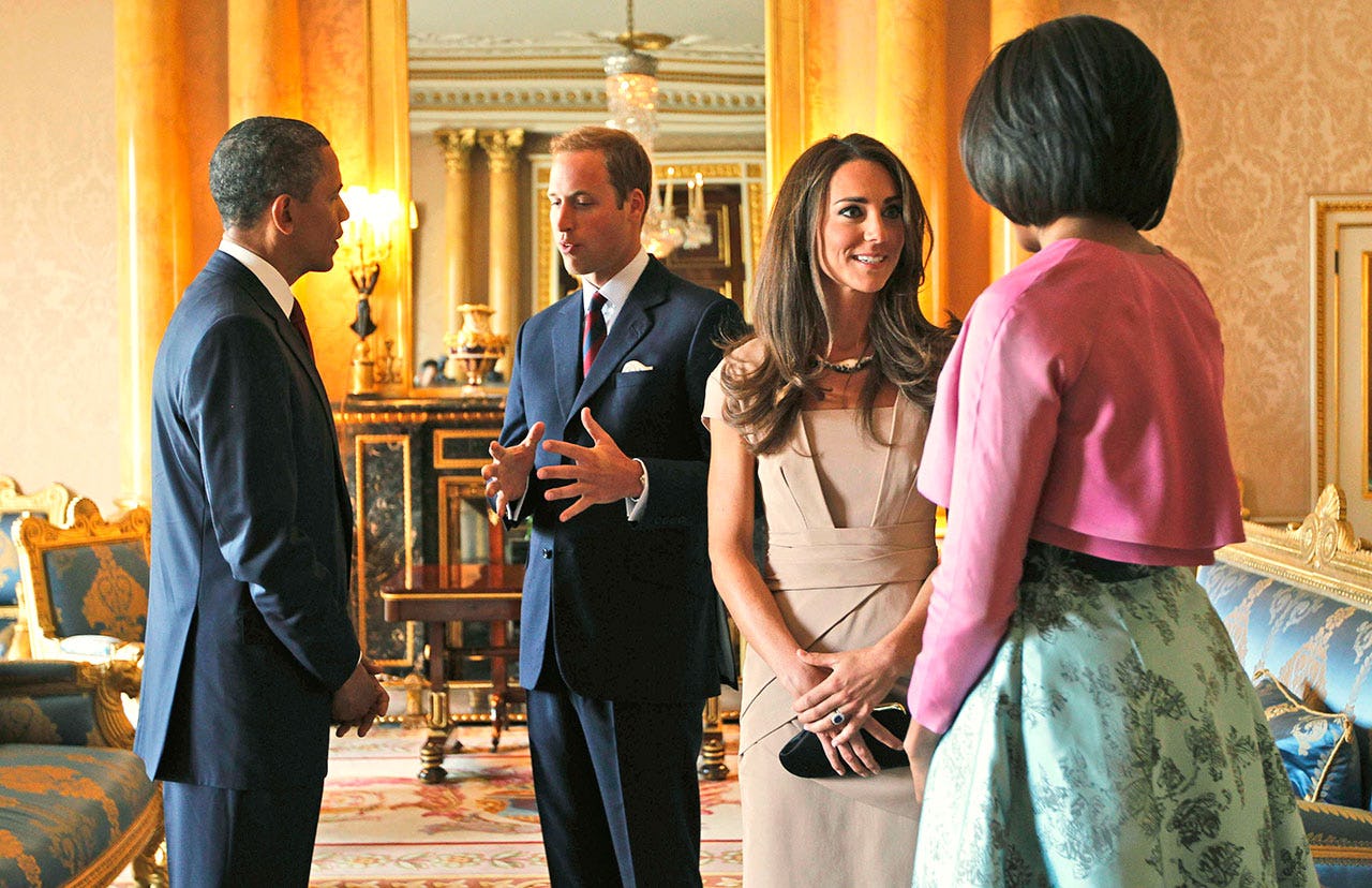 Getting dressed for a grand dinner party usually starts by selecting a few frocks and ends with every stitch of clothing from your closet strewn across the floor. When we heard Prince William and Kate Middleton hosted the Obamas for dinner in London, we couldn’t help but wonder if the same “what to wear” debacle ensued. Regardless, the results were, as always, incredibly chic and reflective of each woman’s personal style. The duchess opted for her go-to midi dress with a belted waist (sorry, the L.K. Bennett frock is already sold out!) and classic pumps, while the first lady did what she does best, rocking an unexpected color in a monochromatic head-to-toe look. While we were kind of sad Kate didn’t wear a crown, and secretly hoped the Queen would be there to chaperone, at least our favorite UK bachelor, Prince Harry, came along as the fifth wheel. Oh, what we wouldn’t give to have been a fly on the royal wall.