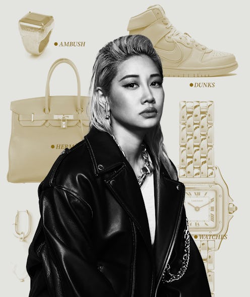 Whether she’s sitting front row at a Louis Vuitton show or biking around Tokyo’s Shibuya neighborhood, Ahn’s personal style is immaculate but relaxed. She may be posing in Bottega Veneta’s viral shearling coat, but it’s just as likely she’s in jeans and a tee — finished with a Birkin, of course. And, you know her collection of both jewelry and sneakers is one to rival the best. The through-line in Ahn’s dressing habits is that it’s playful, styling vintage with new elements, mixing textures and silhouettes, and never feeling overly polished or stuffy.