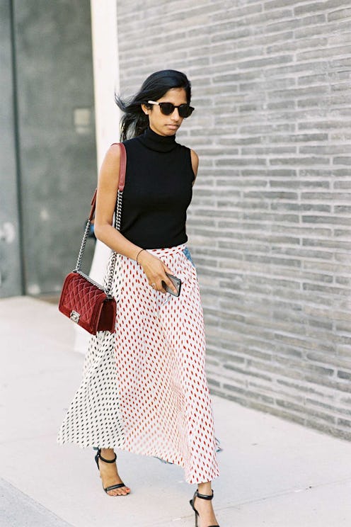 While maxi skirts are incredibly comfortable (and universally flattering), the billowing silhouette is often something we only consider for vacations. As evidenced by our EIC, the floor-sweeping length is actually incredibly versatile in everyday life since it pairs well with everything from trendy tops to cool-girl sneakers and stands out in a crowd of cutoffs and minidresses. A maxi devotee or not, click through for our favorite long styles and how to wear them for work, drinks and beyond.