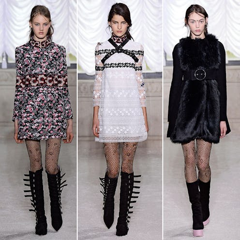 Comprised of retro floral-and-lace mini and maxi dresses accented with faux fur and leather details, Giambattista’s fall collection can be recreated on a budget with a little strategic styling (unlike that tulle Grammys gown). Below, 12 buys to get the creative fashion juices flowing.