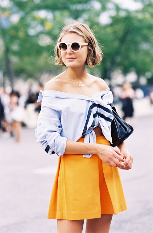 It’s refreshing when a new trend you’re hesitant to try turns out to be more versatile than you thought it could be. Enter the off-the-shoulder top: Whether you’re headed to a music festival, the farmers’ market or have an exciting date night planned, there’s a version of the flattering blouse fit for every occasion (and every type of fashion girl). We paired 6 of our favorite off-the-shoulder tops with the pants, skirts and shorts that flatter them most. Follow our advice, and you’ll be rocking the shoulder-baring staple with confidence all summer long.
